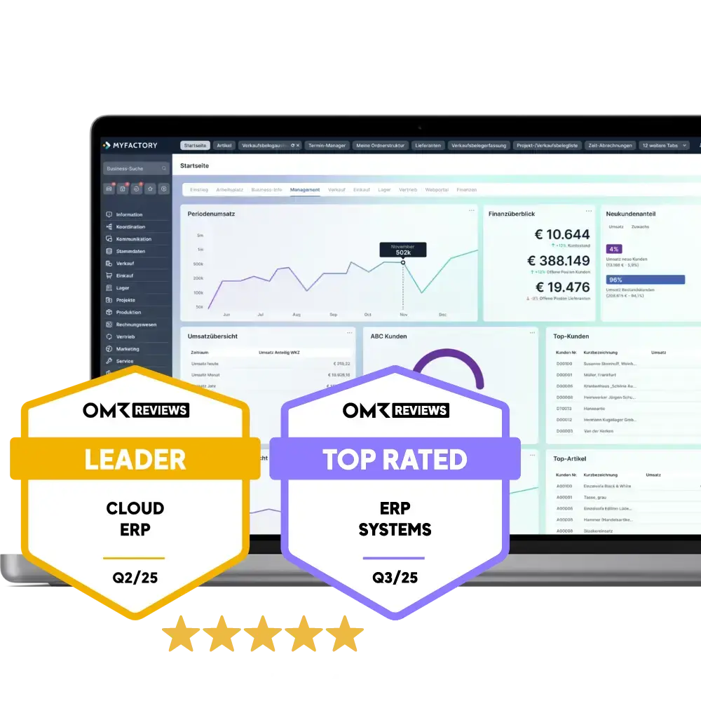 Der Business Manager ist das Herzstück von Myfactory und weit mehr als nur eine Oberfläche. Er ist die zentrale Schaltstelle für alle Benutzer und Prozesse im System. Mit seinen flexiblen, durchdachten Funktionen unterstützt er dich dabei, dein Tagesgeschäft strukturiert, effizient und transparent zu gestalten: