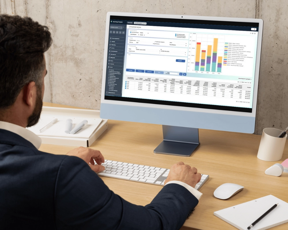 Zahlen, Daten, Fakten – viele Unternehmen ertrinken in Informationen, aber es fehlt der klare Blick auf das Wesentliche. Genau hier setzt das Management-Informationssystem (MIS) von Myfactory an. Es stellt dir alle relevanten Kennzahlen in Echtzeit zur Verfügung – visuell aufbereitet, verständlich und direkt aus deinen ERP-Prozessen gespeist.