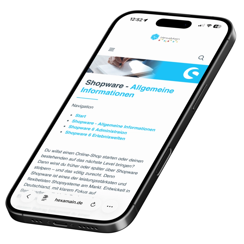 Technisch basiert hexamain.de auf einer ganz normalen Shopware 6 Installation. Der Unterschied: Wir haben bewusst alle klassischen Shop-Funktionen – also Warenkorb, Kundenkonto, Checkout und Produktlisting – deaktiviert, um Shopware als reines Content-System zu nutzen.